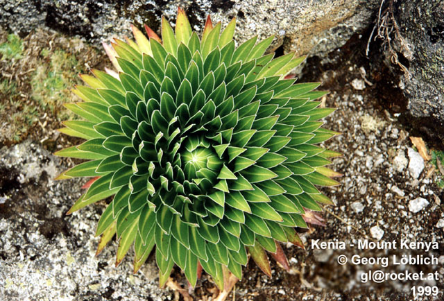 Zusammen mit der Senecie ist die Lobelie die klassische Pflanze der afrikanischen Berge. Sie blüht einmal im Leben. Ihre Blätter wachsen konzentrisch und öffnen und schließen sich täglich, um Sonnenlicht aufzunehmen und Wasser zu speichern.
