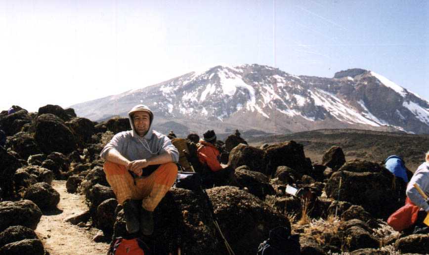 Zeltgenosse Georg Löblich auf dem Shira-Plateau vor der Western Breach Wall des Kibo