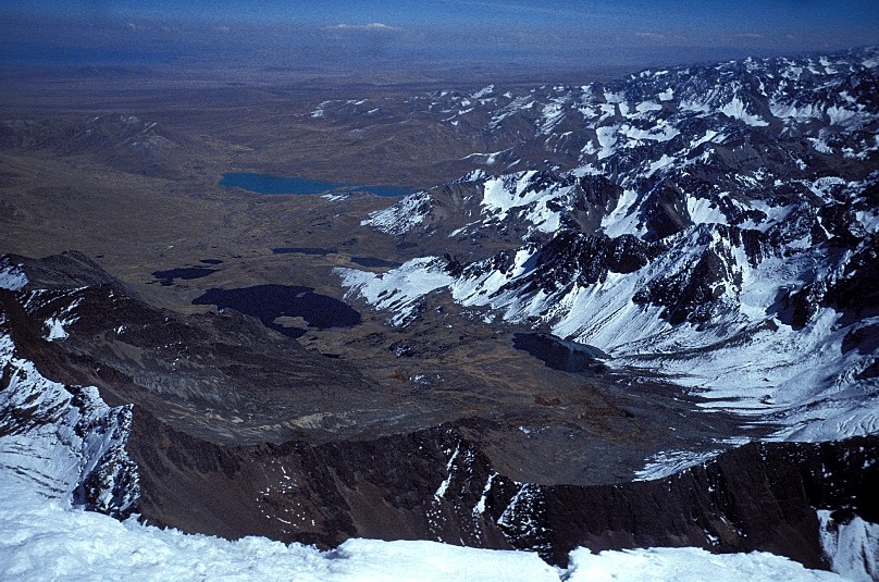 Aussicht vom Gipfel des Huayna Potosí (ganz hinten der Titicacasee)